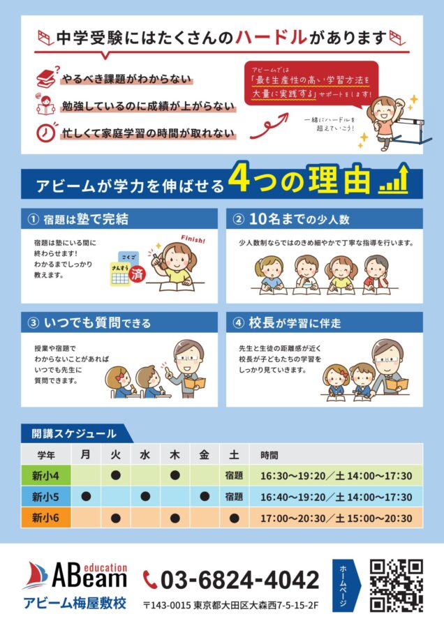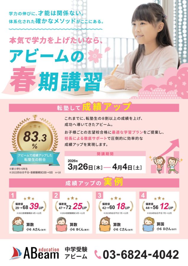 中学受験アビームでは春期講習2026を実施いたします。