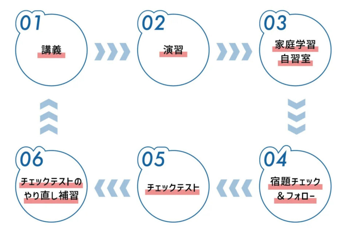 本当の学力アップに基づいた学力UPの6ステップという独自のフレームワークを用いて、お子様の弱点を解明し、一人ひとり最適化されたオーダーメイドの学習メニューを作成します。